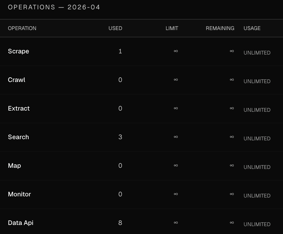 Instantly track pages scraped, jobs completed, and the true throughput of every API call.